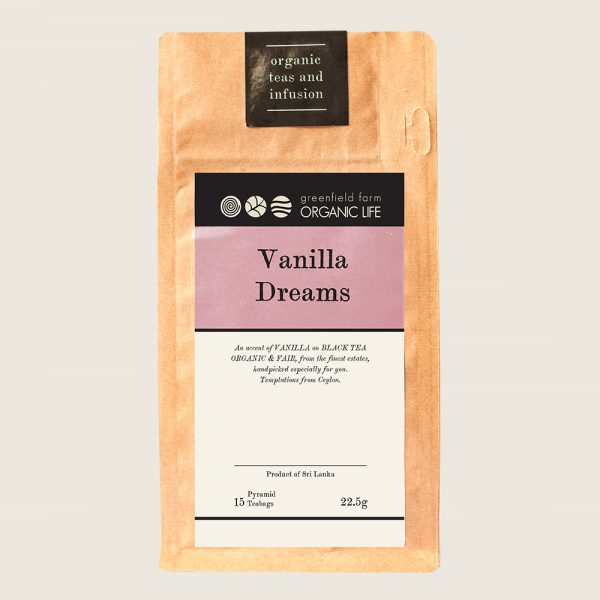 Organic vanilla black tea in bags from Greenfield Organic Life